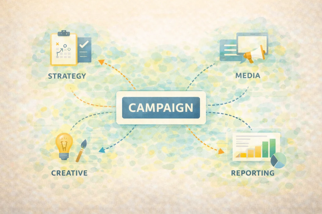 Campaigns involve multiple moving parts. Creative, media, timelines, budgets, and people all need to align.